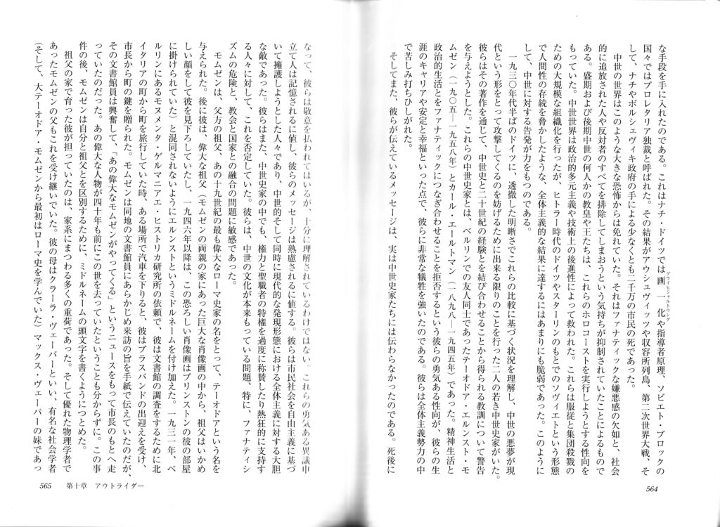 中世研究は、二〇世紀の歴史激動と不可分であったし、その導きの源であることは出来なかったにせよ、有力な注釈ではあり続けたーーと著者は説得することに成功している。